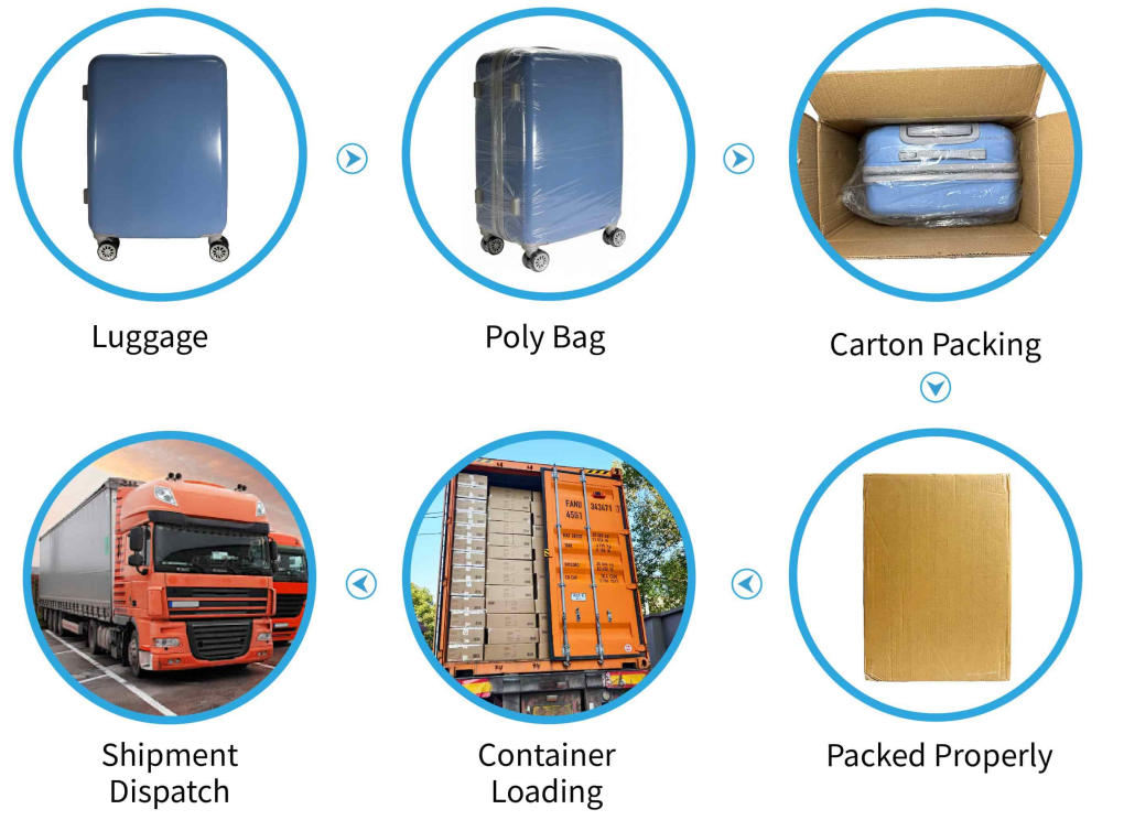 | Material | PP, PC, ABS, liga de alumínio, tecido, couro PU, etc. | Nylon, poliéster, tecido Oxford, couro PU, lona, etc. |