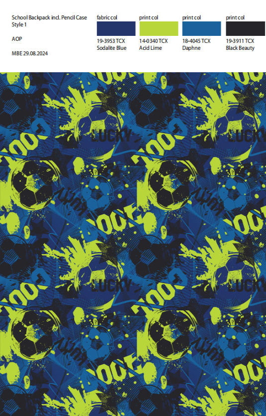 Tecido personalizado para mochila escolar com estampa de futebol, cor TCX, fabricação CMYK.